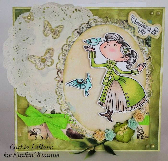So create a card, scrapbook page or altered item with a Kraftin’ Kimmie Stamp that is one of your older