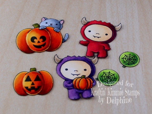 Hello everyone! Krafty Girl Delphine here today to share a step-by-step tutorial on how to make a Mixed Media Halloween scene. I chose to use 3 super cute Halloween stamps sets from the store - MINI MONSTERS, HAUNTED HOUSE and HARVEST BLESSINGS. I stamped elements from the Mini Monsters and Harvest Blessings set in Wicked Black Ink, did some fussy cutting and colored them in Copics.