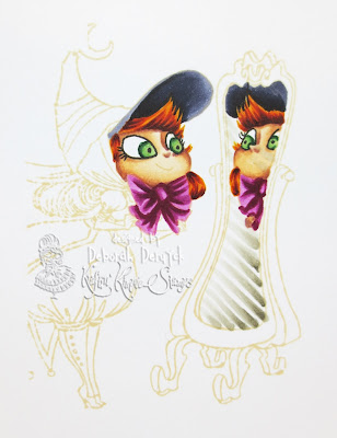 Add some white lines with Copic Opaque White or a white Shapie pen on the mirror and  erase it a bit with your fingers and tadaaaaa.... There's the effect!